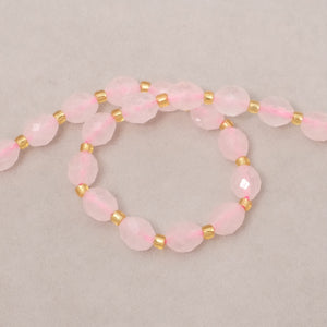 Fil de Perles naturelle ovale facettée 7 x 8mm en Quartz rose. Le fil mesure environ 38cm et contient environ 36 perles.