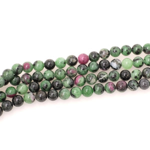 Fil de perles naturelles ronde 6,5mm en Rubis sur Zoïsite Anyolite, le fil mesure environ 37cm et contient environ 58 perles.