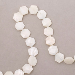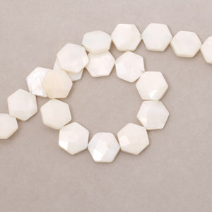 Lot de 4 perles plates hexagone facetté en Nacre blanche.