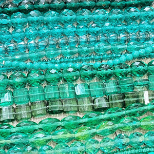Faden mit runden, facettierten böhmischen Perlen 4 mm dunkelgrün transparent