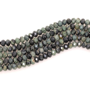 Set aus 8 facettierten natürlichen Perlen 6x4mm aus grünem Jaspis.