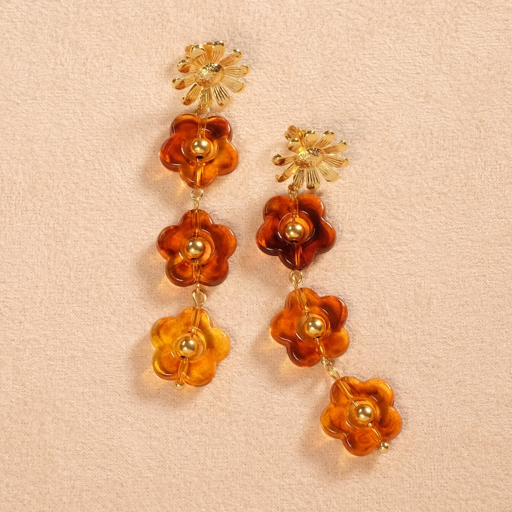 Set of 6 Amber Acrylic Flower Beads 14mm.