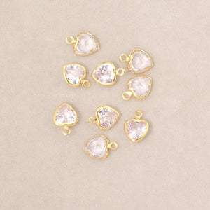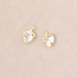 2 Pendentifs sertis coeur en Oxyde de Zirconium en laiton Doré à l'or fin 24K Premium