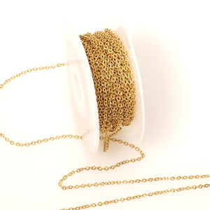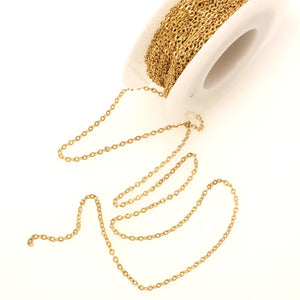 Coupon de 50cm de chaîne maillon ovale facetté en acier inoxydable 304 doré. Maillons soudés.