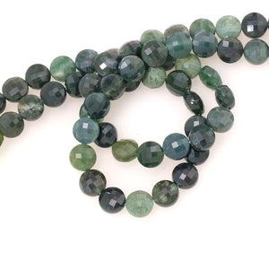 6 perles naturelles palet rond facetté 8mm en Agate mousse