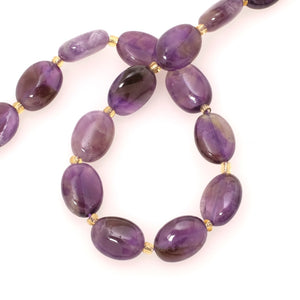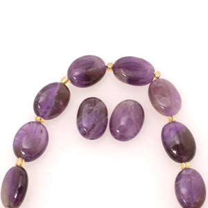 Fil de Perles naturelle ovale 14x10mm en pierre naturelle Améthyste. Le fil mesure environ 37cm et contient environ 24 perles.