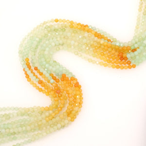 Fil de perles naturelles facettées 3mm en Jade dégradé vert pastel orange