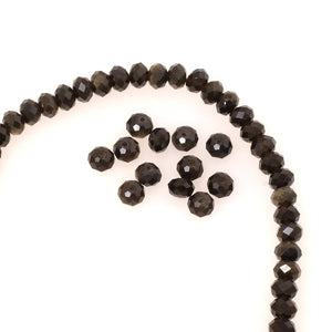 Fio de contas naturais facetadas 6x4mm em Obsidiana prateada