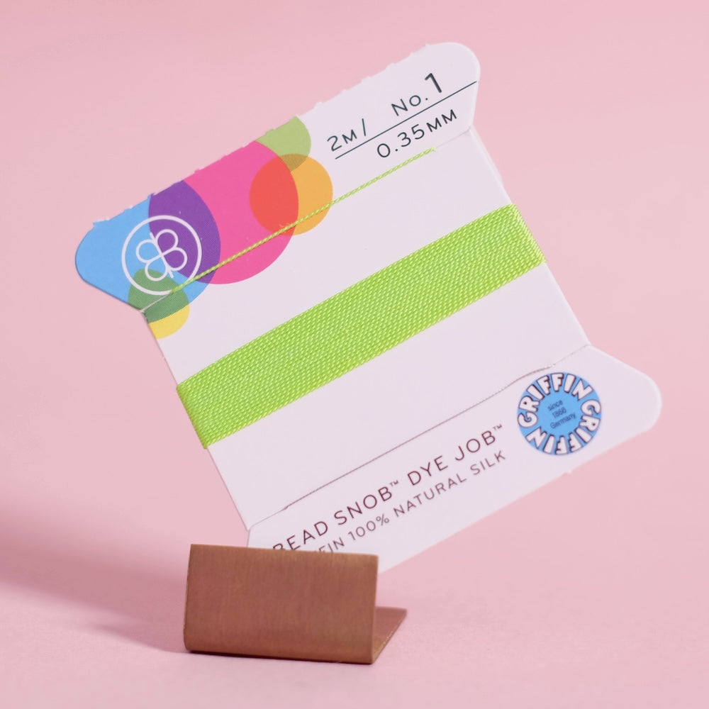 Realce as suas criações de joalharia com o cordão de seda GRIFFIN, um cordão de seda natural de tripla torção de alta qualidade, 100% feito à mão e tingido manualmente. Cada cordão de 2 metros vem com uma agulha integrada em aço inoxidável para um enfiamento fácil e preciso. Este cordão de seda natural premium é ideal para o nó de pérolas, o enfiamento de pedras naturais e a criação de joias com contas de vidro. Perfeito para a criação e reparação de colares e pulseiras.