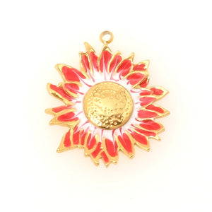 Röd emaljerad blomma hängsmycke i rostfritt stål 304, förgylld med 18K guld, säljs styckvis.